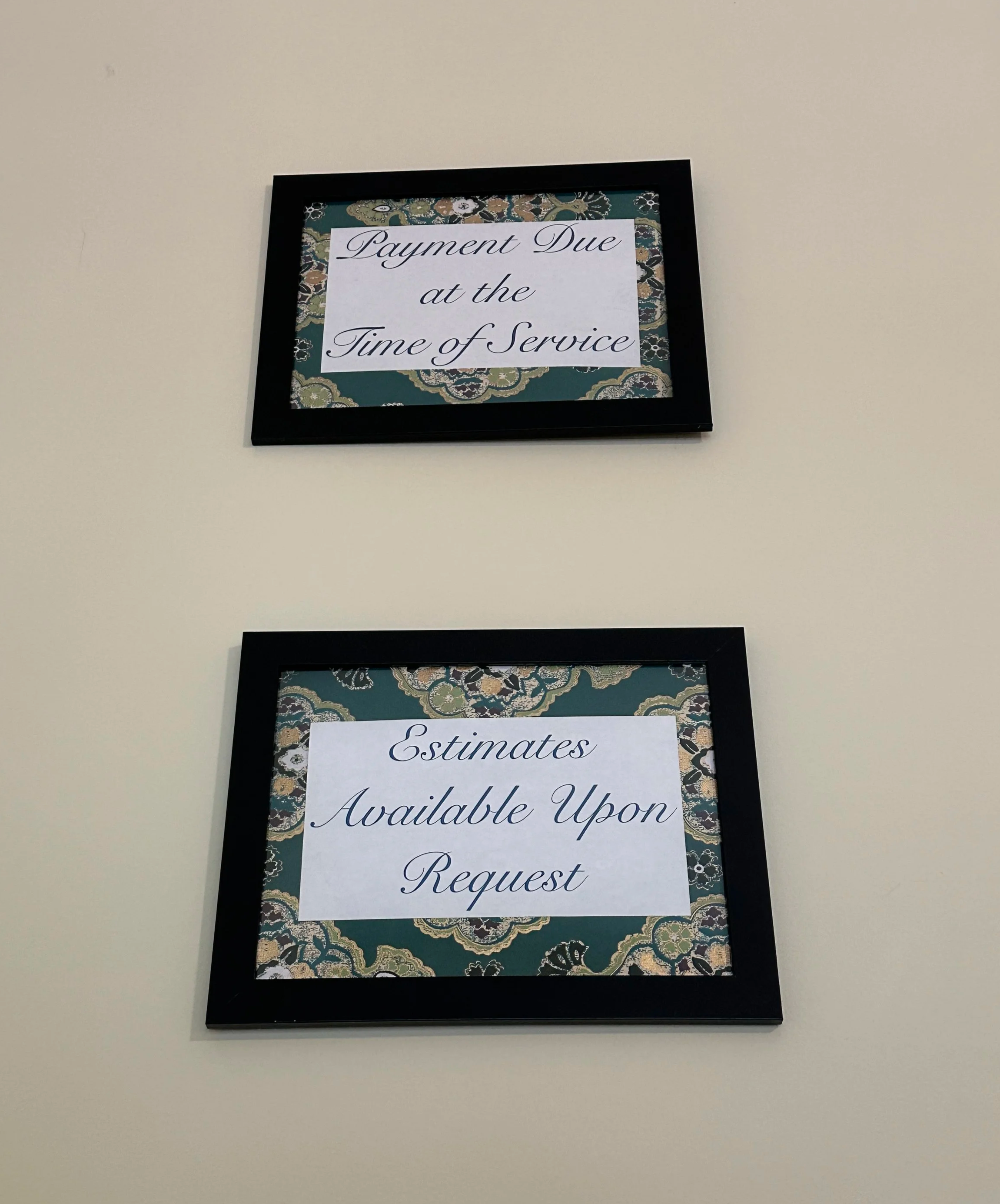 Important messages about about payment are delivered generically in clinic signage rather than customized, digitally in advance.
