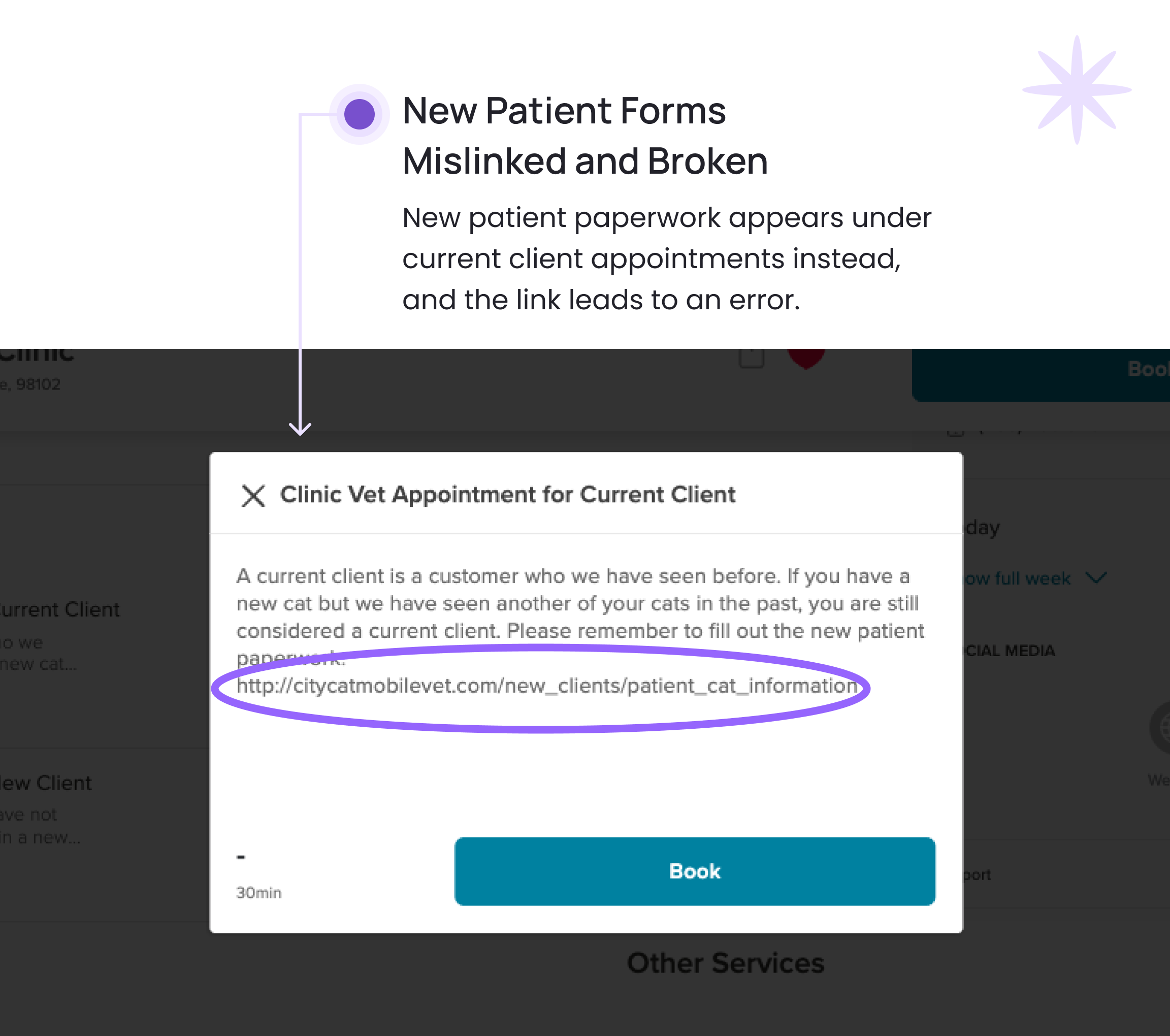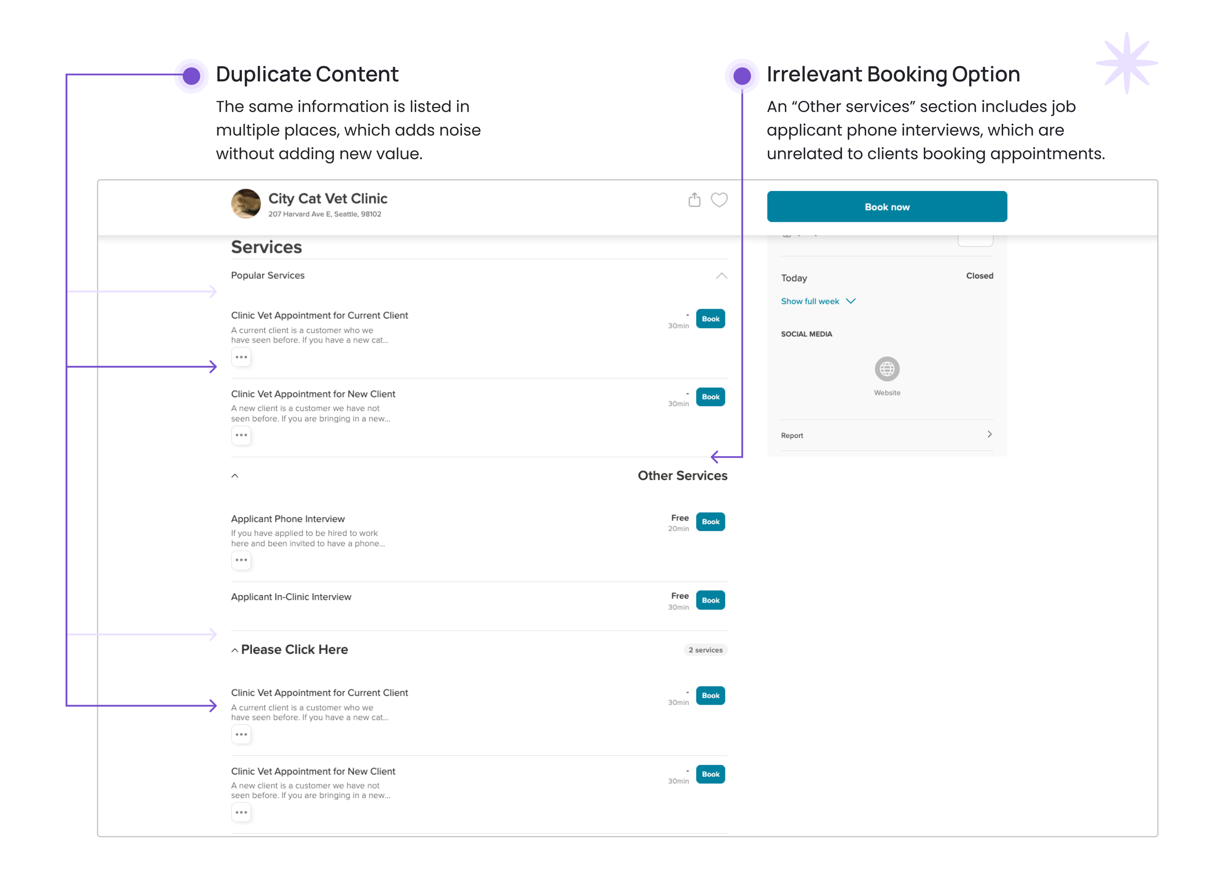 City Cat clients are limited to email communication or the third-party booking platform, Booksy, which contains inconsistent content. Once an appointment is booked, owners receive no further pre-arrival information.