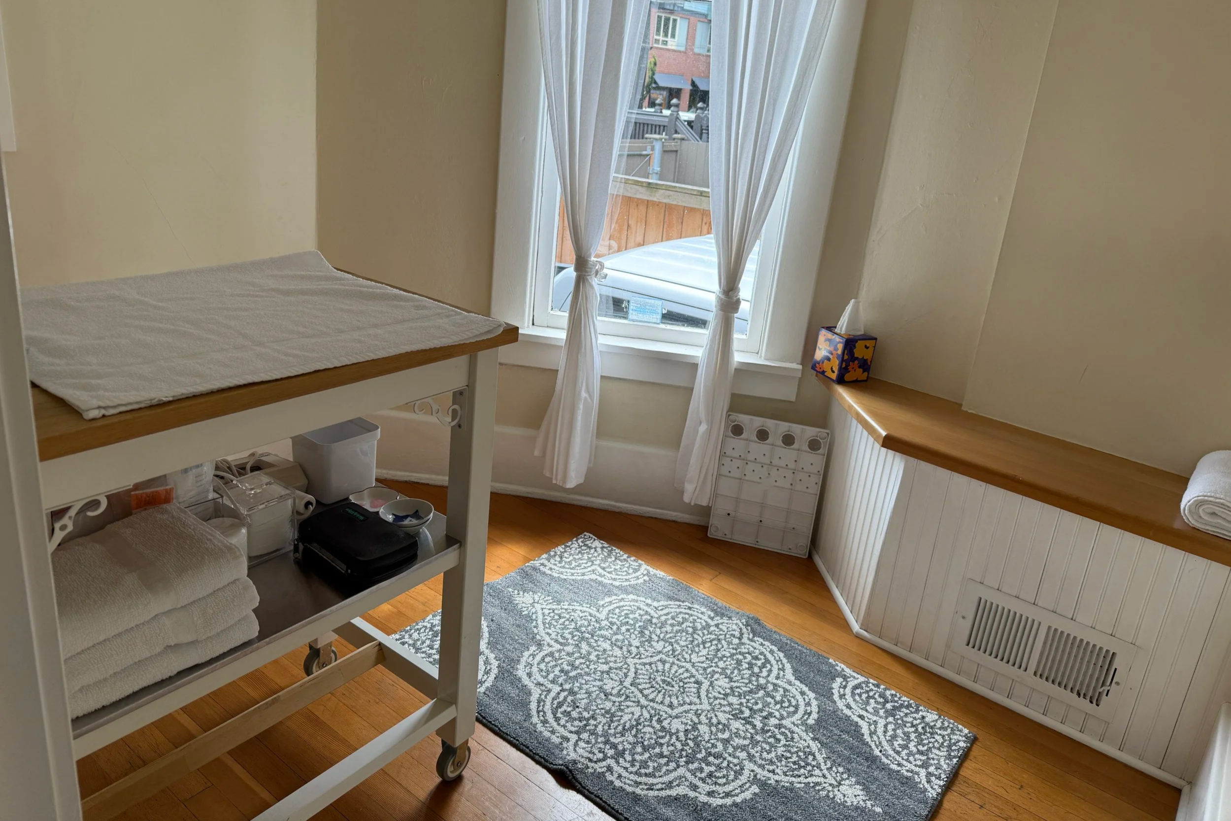 The clinic, while homey, is small. The waiting area has limited seating with noticeable noise from the printer and a window that looks into the first exam room.The small space allows sensitive front desk conversations to be heard throughout the clinic.