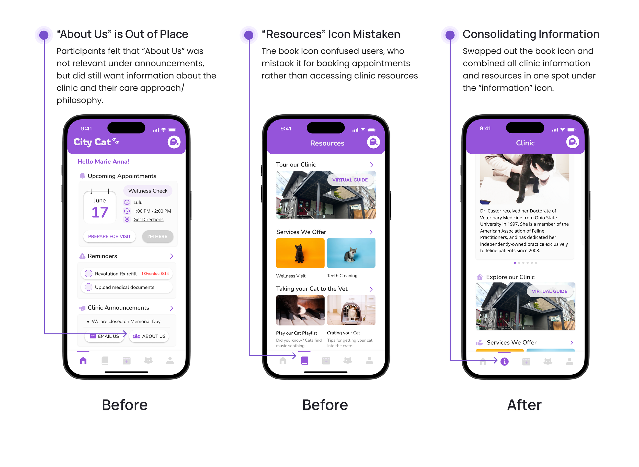 As part of a graduate-level course, Designing Information Experiences, we partnered with City Cat Veterinary Clinic of Seattle. Our collaboration with the clinic helped us focus on real customer needs and everyday challenges in a genuine clinic setting.