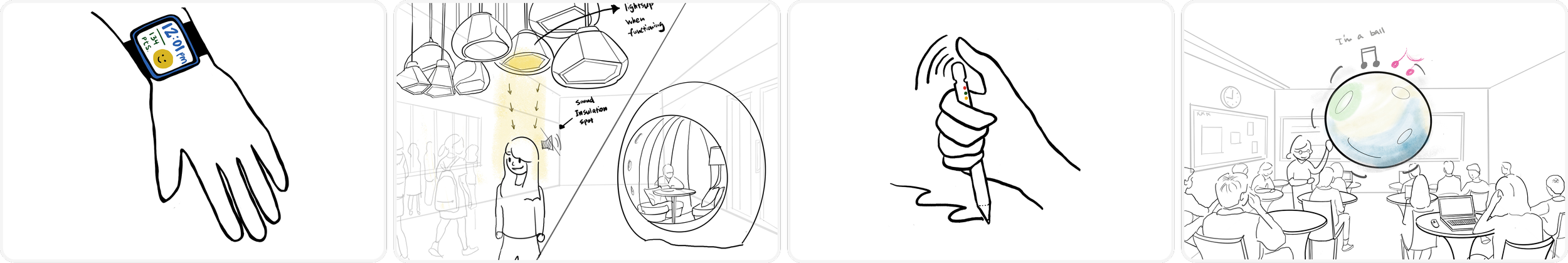 Drawing on prior research from an ideation course and a review of precedent work, our team was challenged to design a custom experience that blended physical and digital components mediated by interactive electronics. Our team generated 20+ concepts.